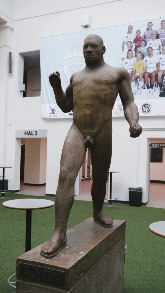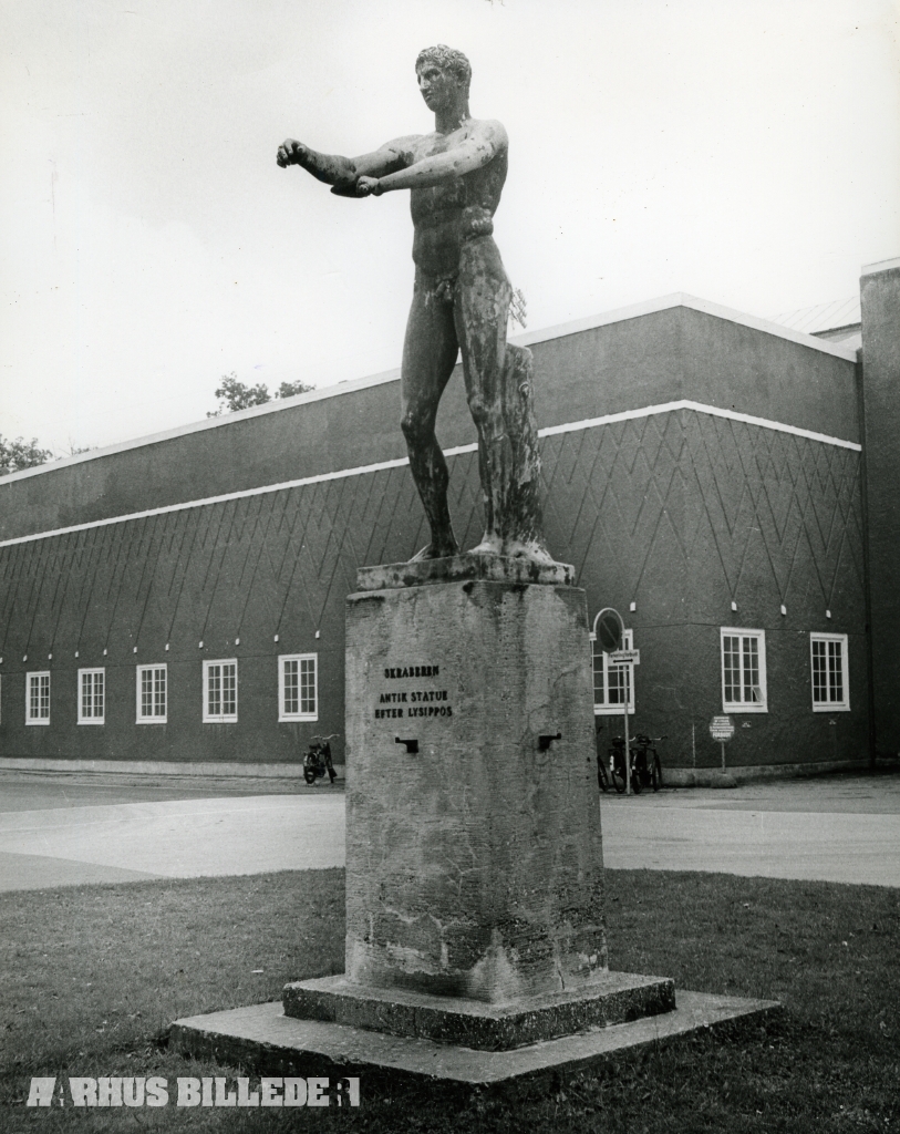 Selvom den ikke er placeret i Aarhus Stadion eller centrum er denne skulptur inkluderet for fuldstændighedens skyld, da den oprindeligt blev afsløret på stadion, før den flyttede til Riisvangen stadion, Risskov i 1948 efter stadionbranden.