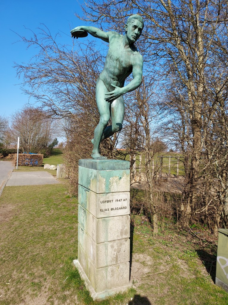 Elias Ølsgaard skabte en lignende skulptur af diskokaster (1947), som er placeret ved Lyseng idrætscenter sammen med Løber (1935).