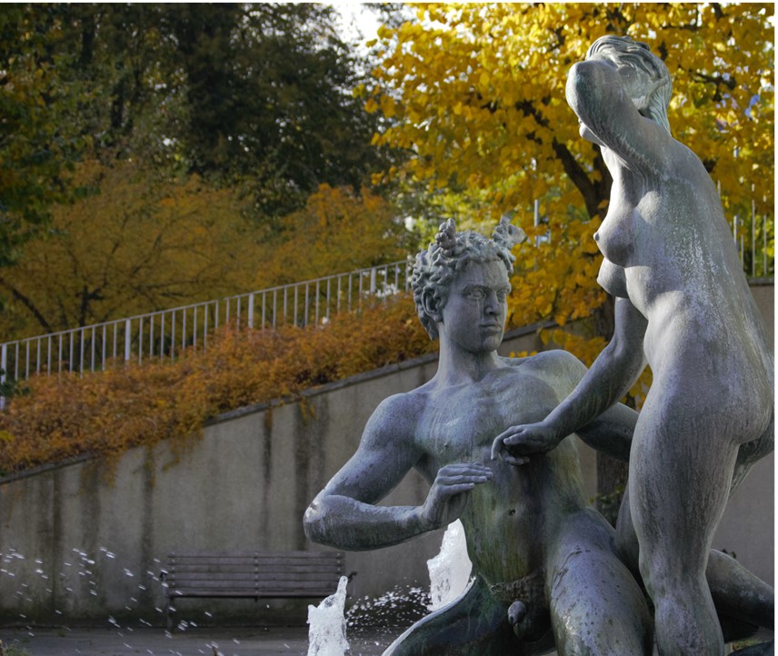 Bjerg fokuserede på at give menneskefiguren et særligt kraftfuldt udtryk ved hjælp af overdimensionerede menneskelige proportioner, som giver karaktererne drama og bevægelse, hvilket forstærkes yderligere af springvandet. Hans største inspiration var kunstneren El Greco.