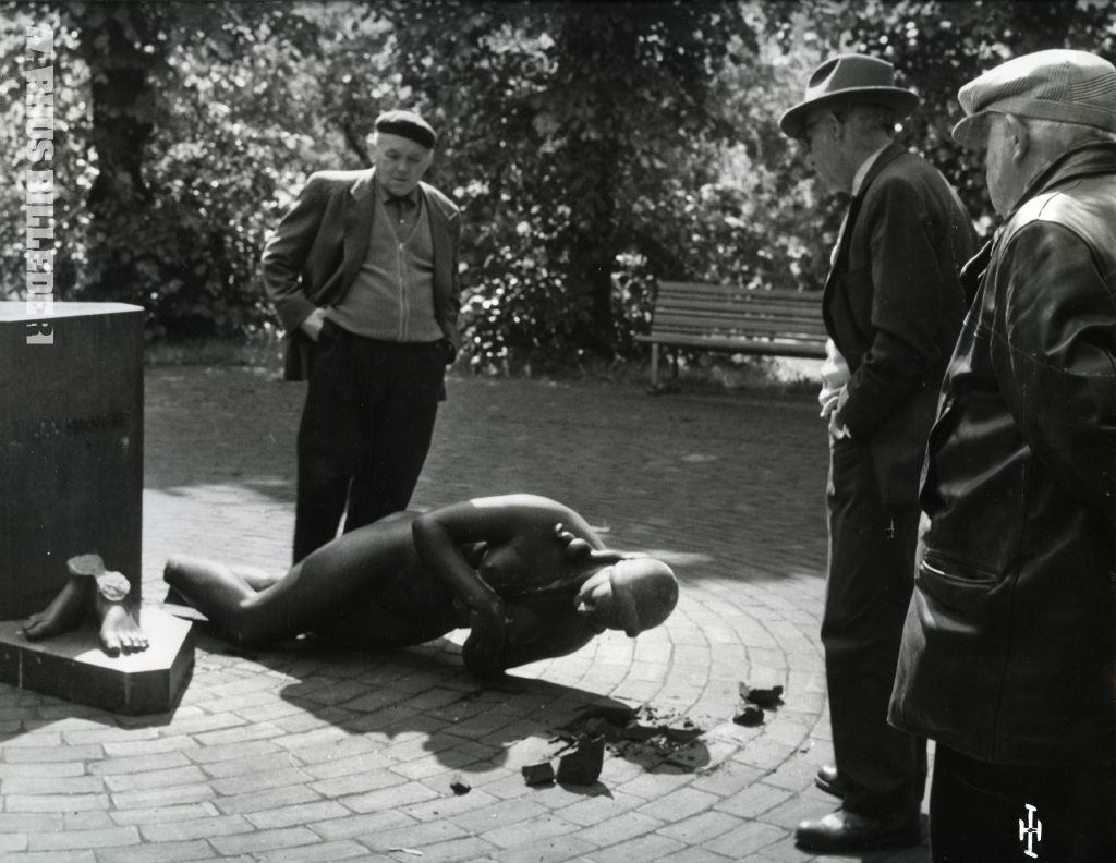 Den blev udsat for hærværk i 1964 og 1971. “Fonden til Bevarelse af Friluftskunst og Mindesmærker i Aarhus” restaurerede den i 1987 og 2000. Den nuværende skulptur er en bronzekopi af originalen.
