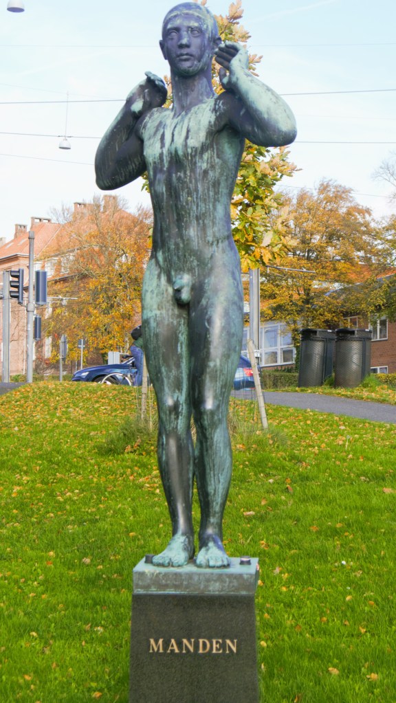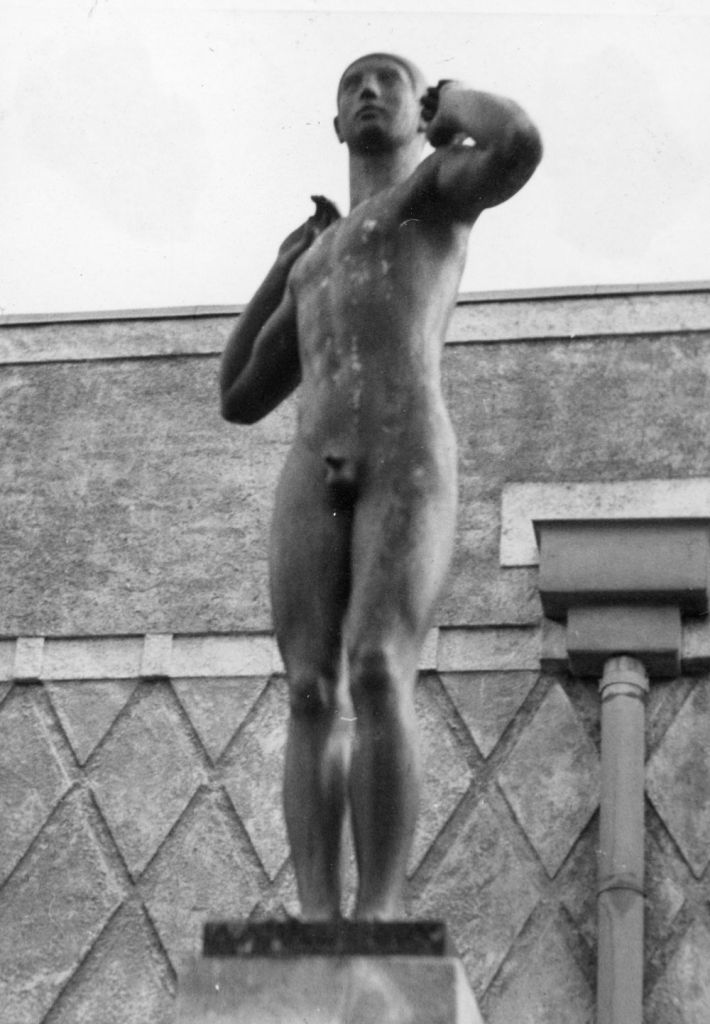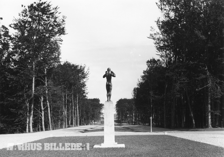 Bronzestatuen blev sammen med fem andre lignende statuer rejst foran Aarhus Stadion i 1921. Flyttet til Vennelystparken i 1943 efter stadionbranden.