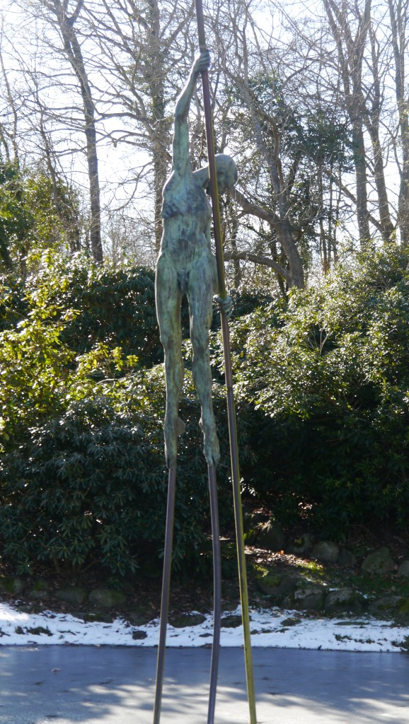 Grand Passeurer, Nicolas Lavarenne (1994). Skulpturen i bronze er 6 meter høj. Figuren er placeret midt i en sø som en færgemand, der skubber en pram.