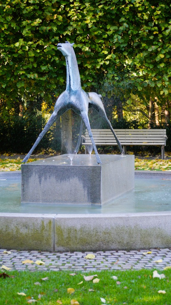 Skulpturen er inspireret af en solvogn fra bronzealderen fundet i en mose i Nordsjælland i 1902. Bronzeskulpturen er sat i et kalkstensbassin.